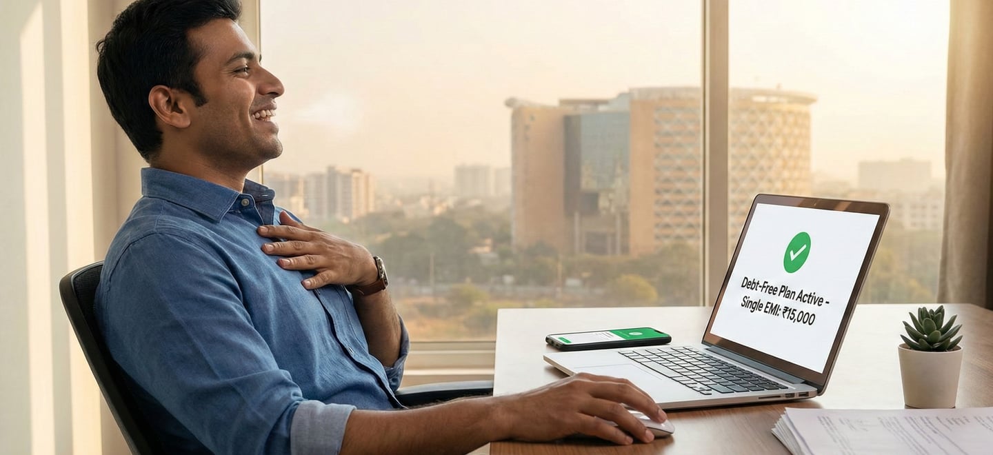 Combine your credit card bills and loans into one easy EMI. Check eligibility fast.